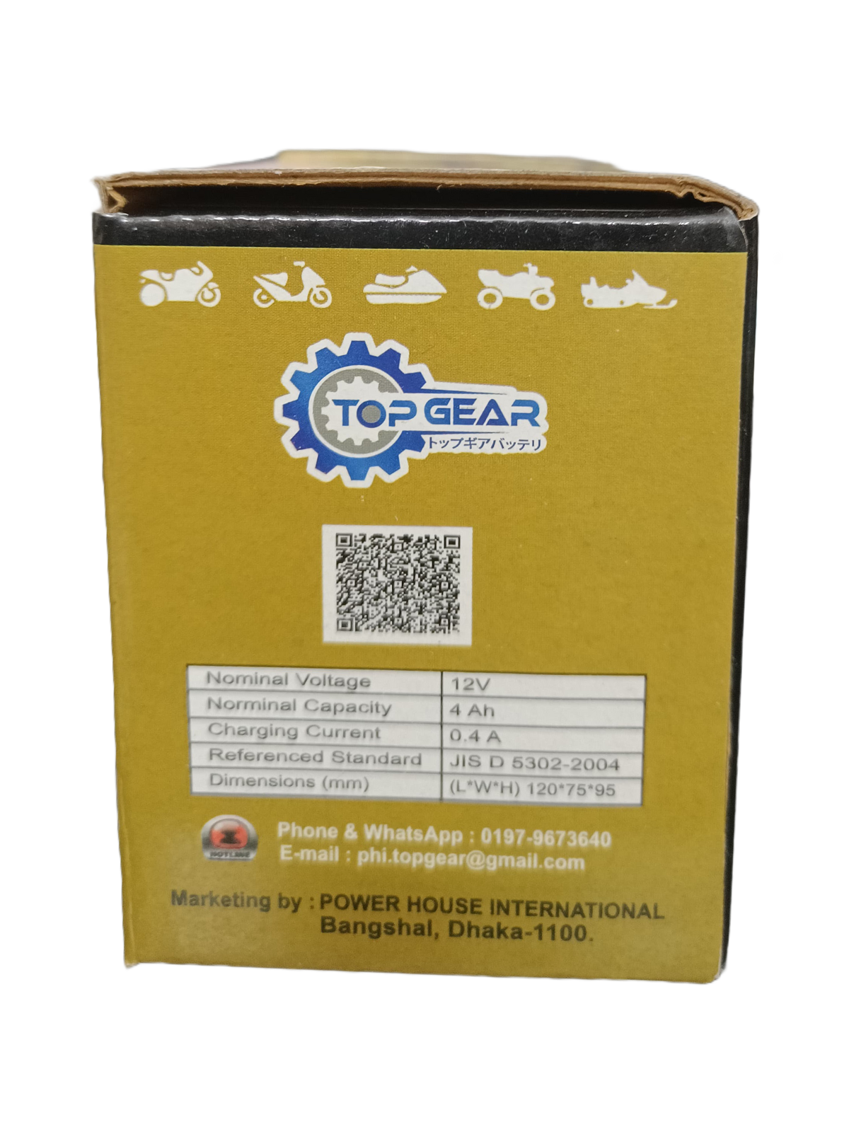 The TOP GEAR BATTERY – TGR is a high-performance 12V battery that delivers reliable power with a 4Ah capacity over 10 hours.