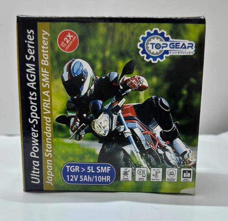 The TOP GEAR BATTERY – TGR is a high-performance 12V battery that delivers reliable power with a 5Ah capacity over 10 hours.