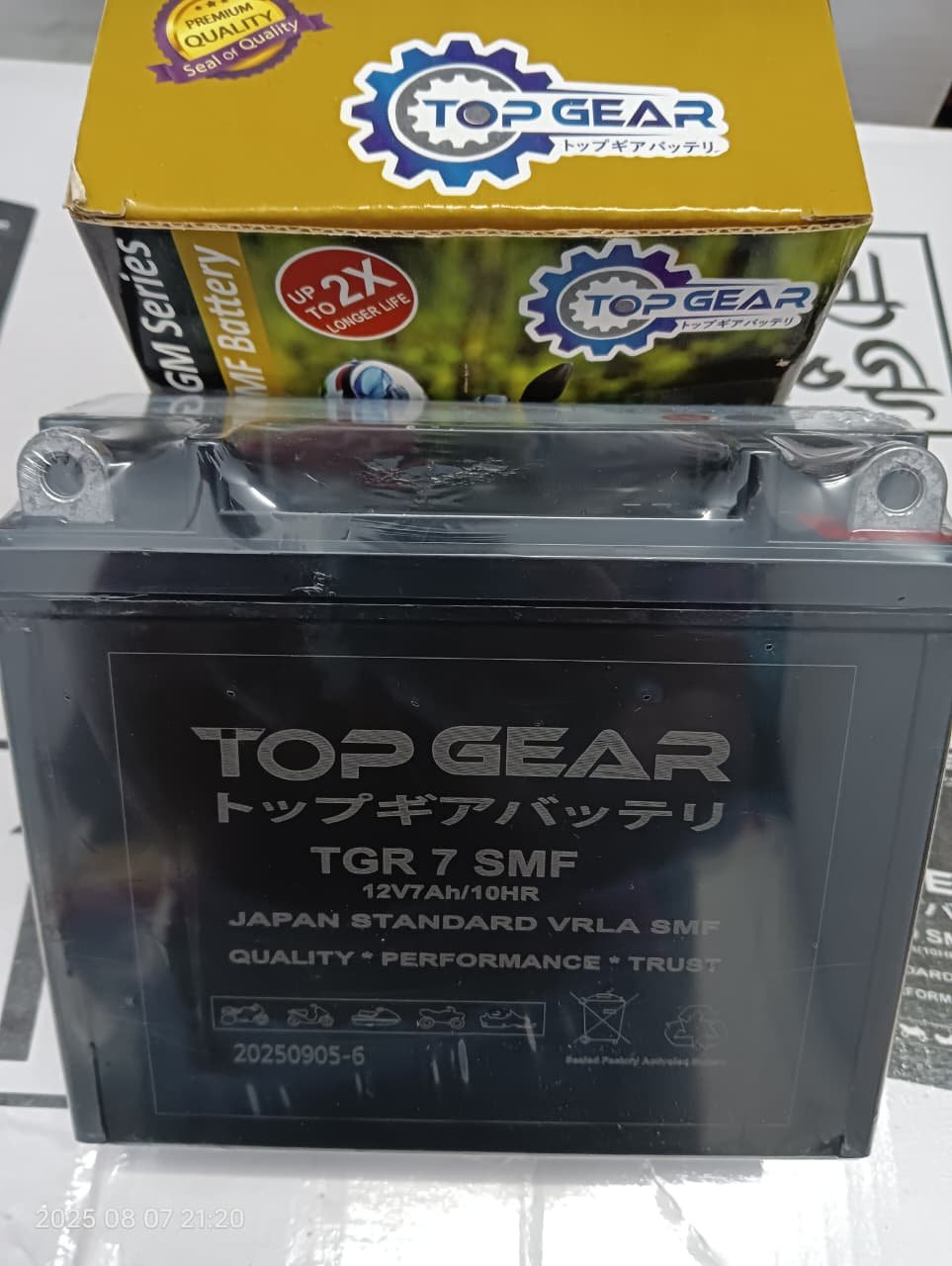 The TOP GEAR BATTERY – TGR is a high-performance 12V battery that delivers reliable power with a 7Ah capacity over 10 hours.