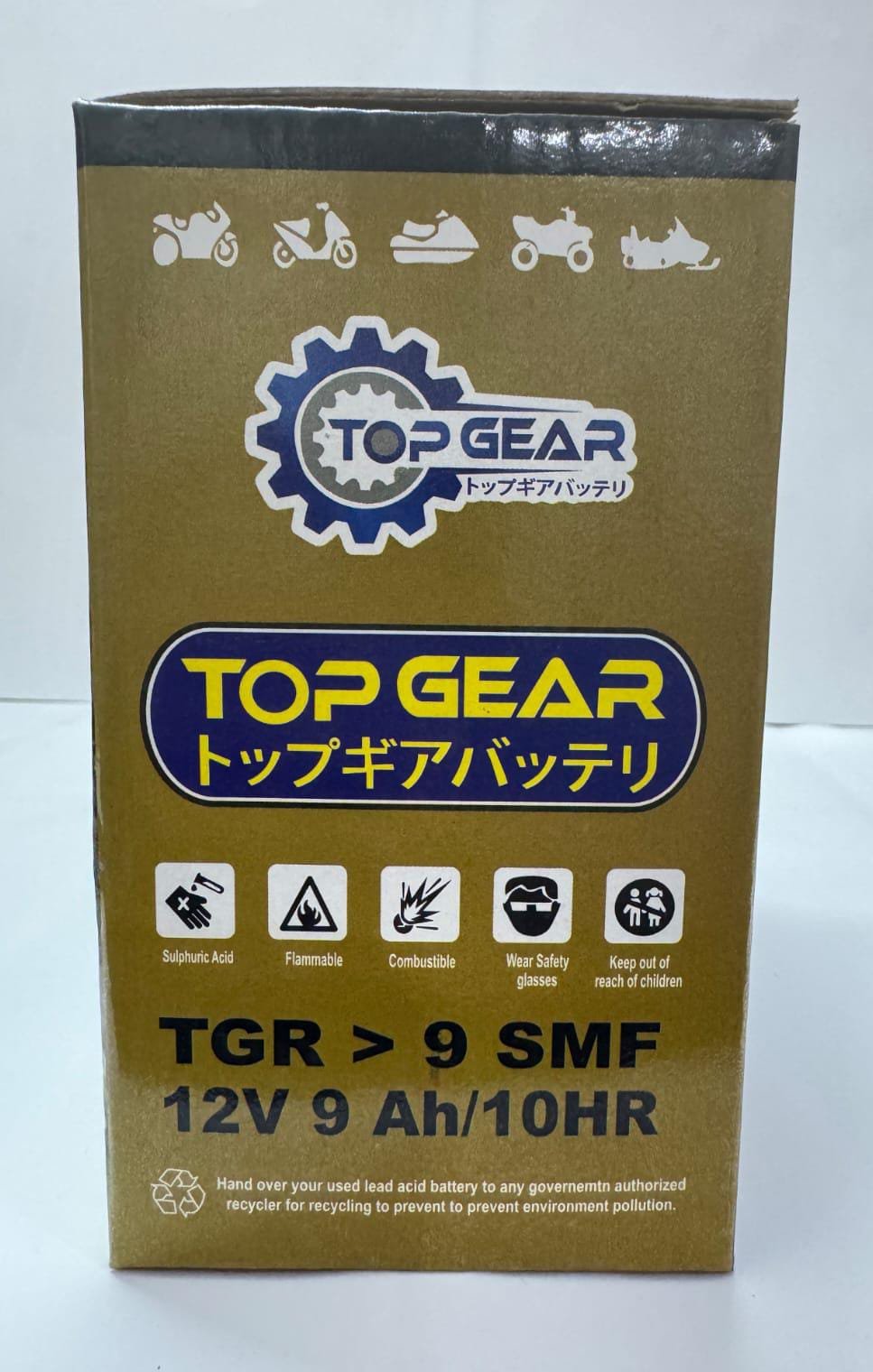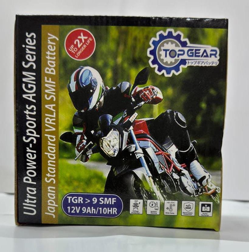 The TOP GEAR BATTERY – TGR is a high-performance 12V battery that delivers reliable power with a 9Ah capacity over 10 hours.